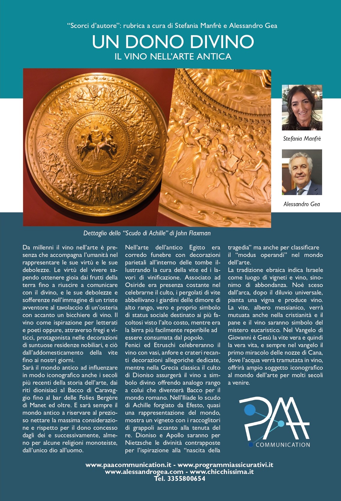 Da millenni il vino nell’arte è presenza che accompagna l’umanità nel rappresentare le sue virtù e le sue debolezze. Le virtù del vivere sapendo ottenere…